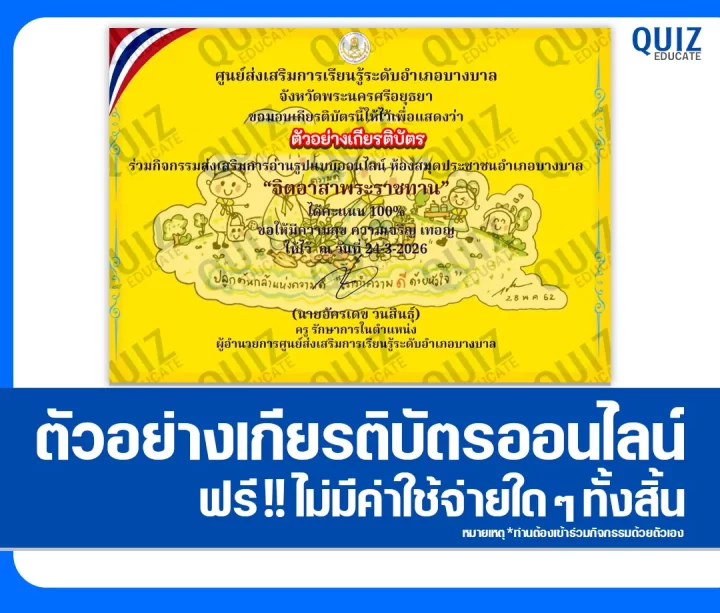 วันนี้ก็จบไปแล้วอีกหนึ่งบทความดี ๆ จากพี่แอดมิน โดยเว็บไซต์ของพี่แอดมินยังมีเกียรติบัตรออนไลน์ฟรี ๆ จาก มหาวิทยาลัย หรือหน่วยงานที่น่าเชื่อถืออีกมากมาย หลายวิชา เช่น ข้อสอบสอบวัดระดับภาษาอังกฤษ แบบ CEFR คณิตศาสตร์ ภาษาจีน ให้ได้ทดสอบระดับความรู้ตัวเองกัน พร้อมทั้ง ข้อสอบวัดระดับความรู้ เพื่อช่วยให้น้อง ๆ ทดลองประเมินทักษะในแต่ละวิชาที่ตัวเองชอบได้ ข้อสอบมีตั้งแต่ระดับ ม.ปลาย ไปจนถึงมหาลัยเลยนะ และยังมีการอบรมออนไลน์ ผ่าน E-learning คอร์สเรียนออนไลน์ฟรี ได้ใบประกาศ ความรู้คอมพิวเตอร์ และ AI เท็มเพลตหน้าปก Portfolio สวย ๆ ไว้ให้น้อง ม.ปลายดาวน์โหลดไปใช้งานในการยื่นพอร์ตฯ TCAS การเรียนสมัครเรียนต่อระดับมหาวิทยาลัย และยังมีสาระน่ารู้ต่าง ๆ ที่เป็นประโยชน์อีกด้วยนะ สามารถเลือกดูได้ที่แถบเมนูด้านบน หรือด้านข้างซ้ายบนในโทรศัพท์มือของน้อง ๆ โดยเกียรติบัตรออนไลน์จะมีมาจากหลายหน่วยงานทั้ง กศน มหาวิทยาลัยชั้นนำ และหน่วยงานรัฐต่าง ๆ ทางพี่แอดมินจะอัพเดตเกียรติบัตรใหม่ เข้ามาในทุก ๆ วันเพื่อให้ทันเหตุการณ์ตลอดเวลา สุดท้ายพี่แอดมินขอขอบคุณน้อง ๆ ที่ให้ความสนใจในเว็บไซต์และบทความของพี่แอดมินครับ หากมีข้อแนะนำใด ๆ อย่าลังเลที่จะแจ้งพี่แอดมินนะ หากต้องการดูเกียรติบัตรใบอื่น ๆ หรือมีคำถามใด ๆ สามารถดูเพิ่มเติมได้ที่: ศูนย์รวมเกียรติบัตรออนไลน์ และแบบทดสอบออนไลน์ฟรี
