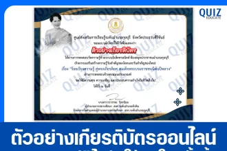 เกียรติบัตรออนไลน์ฟรี ทำข้อสอบวัดระดับความรู้ เรื่อง ร้อยเรียงความรู้ คู่พระเกียรติยศ สมเด็จพระบรมราชชนนีพันปีหลวง
