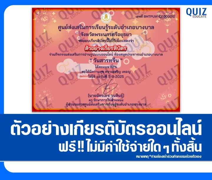 • เกียรติบัตรออนไลน์ | ไม่มีค่าใช้จ่าย