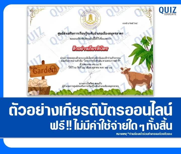 • Quizeducate.com ไม่ใช่ผู้ออกเกียรติบัตร น้อง ๆ ต้องติดต่อแก้ไขกับต้นทางด้วยตัวเอง