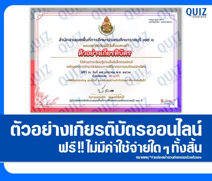 สวัสดีครับ วันนี้ผมขอนำกิจกรรมทำข้อสอบวัดระดับความรู้ เรื่อง การรักษาวินัยและการใช้มาตรการลงโทษนักเรียน เพื่อรับเกียรติบัตรออนไลน์ โดยเมื่อท่านได้ทำแบบทดสอบผ่านเกณฑ์ที่ทางผู้จัดกิจกรรมได้กำหนดไว้ ท่านจะได้รับเกียรติบัตรเป็นไฟล์ PDF ดังภาพตัวอย่างที่ได้ทางผมได้นำมาแสดงให้ดูไว้ผ่านทาง Email ที่ท่านได้ลงทะเบียนไว้ตอนทำแบบทดสอบ หรือ Platform ค้นหาเกียรติบัตร(จะมีปุ่มค้นหาอยู่ข้างๆกัน)ครับ สามารถทำแบบทดสอบได้ที่ปุ่มทำแบบทดสอบด้านล่างเลยครับ