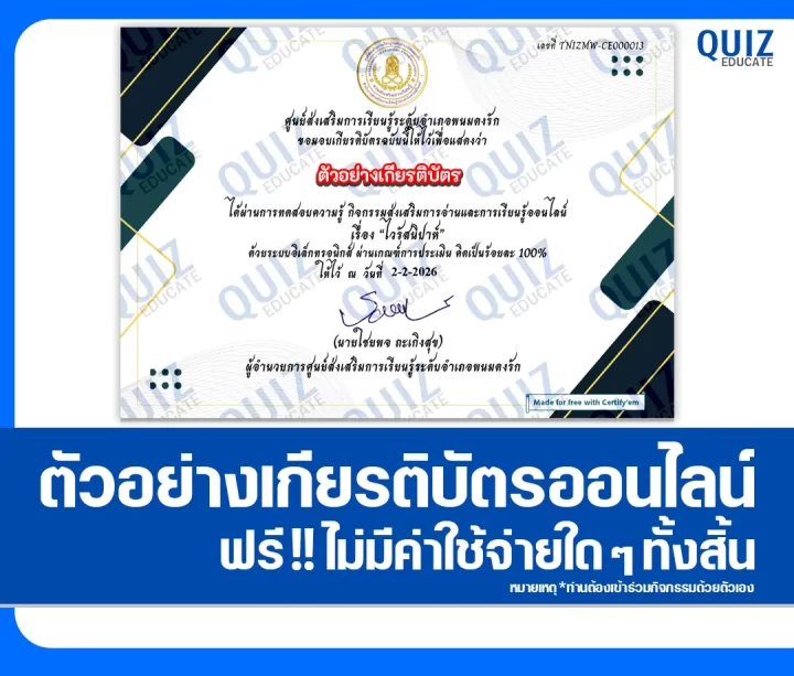 • เกียรติบัตรออนไลน์ | ไม่มีค่าใช้จ่าย