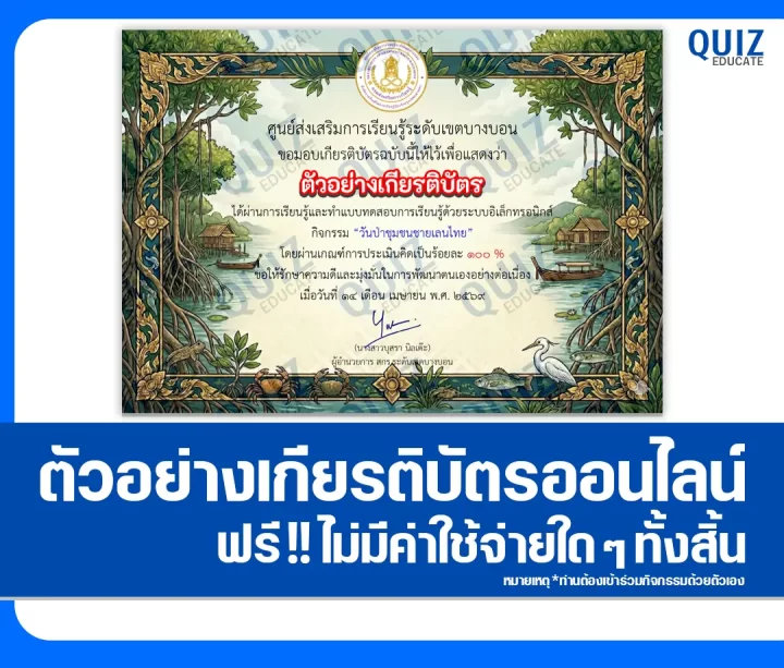ทำข้อสอบวัดระดับความรู้ เรื่อง วันป่าชุมชนชายเลนไทย 2569 เพื่อรับเกียรติบัตรออนไลน์ ผ่าน Google Form
