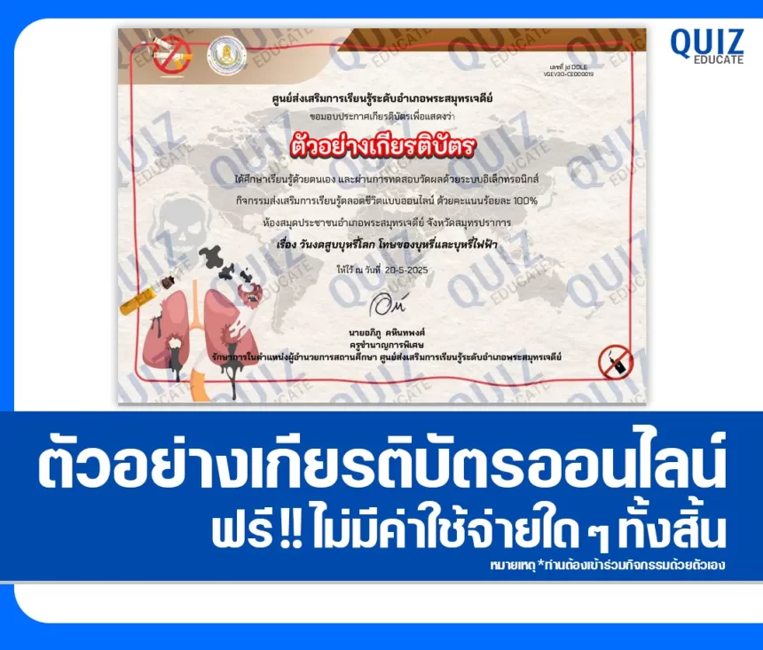 เกียรติบัตรออนไลน์ | ไม่มีค่าใช้จ่าย
