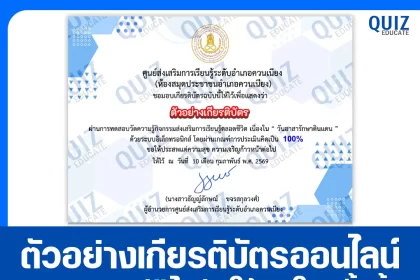 เกียรติบัตรออนไลน์ฟรี ทำข้อสอบวัดระดับความรู้ เรื่อง งานสารบรรณและเทคนิคการเขียนหนังสือราชการ