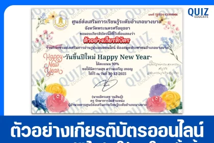 เกียรติบัตรออนไลน์ฟรี ทำข้อสอบวัดระดับความรู้ เรื่อง วันขึ้นปีใหม่ Happy New Year