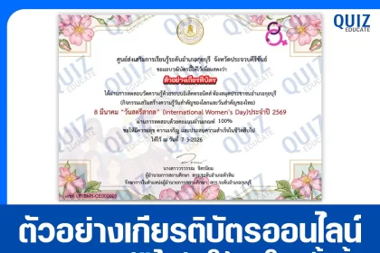 เกียรติบัตรออนไลน์ฟรี ทำข้อสอบวัดระดับความรู้ เรื่อง วันสตรีไทย